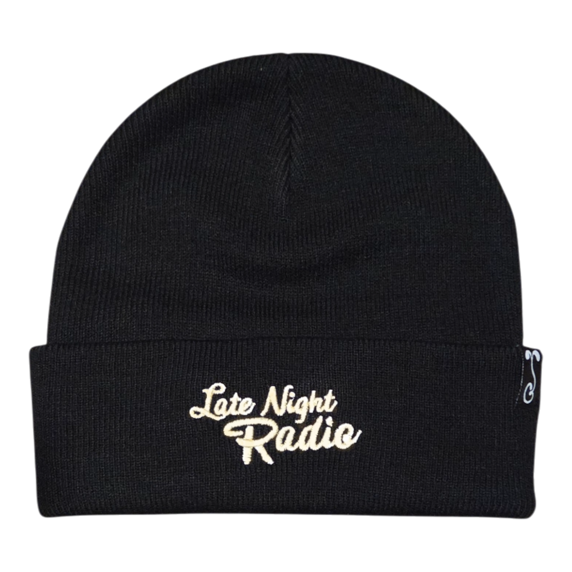 Late Night Radio logo embroidered on a Grassroots Beanie in Black.